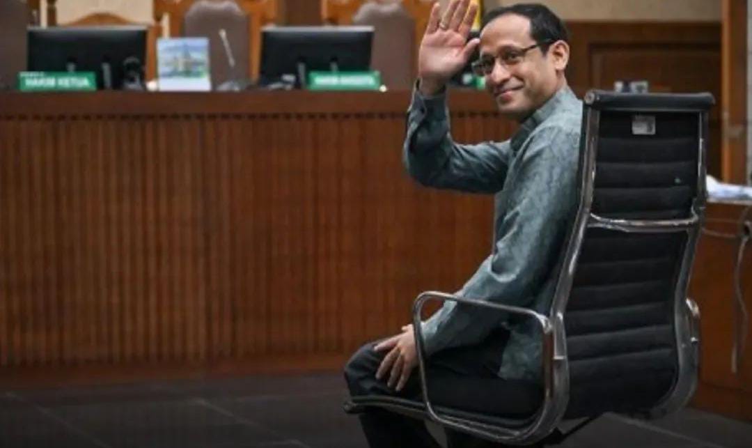 Mantan Menteri Pendidikan, Kebudayaan, Riset, dan Teknologi 2019–2024, Nadiem Anwar Makarim, berdiri di ruang sidang Pengadilan Tindak Pidana Korupsi (Tipikor) Jakarta Pusat bukan sekadar sebagai terd...