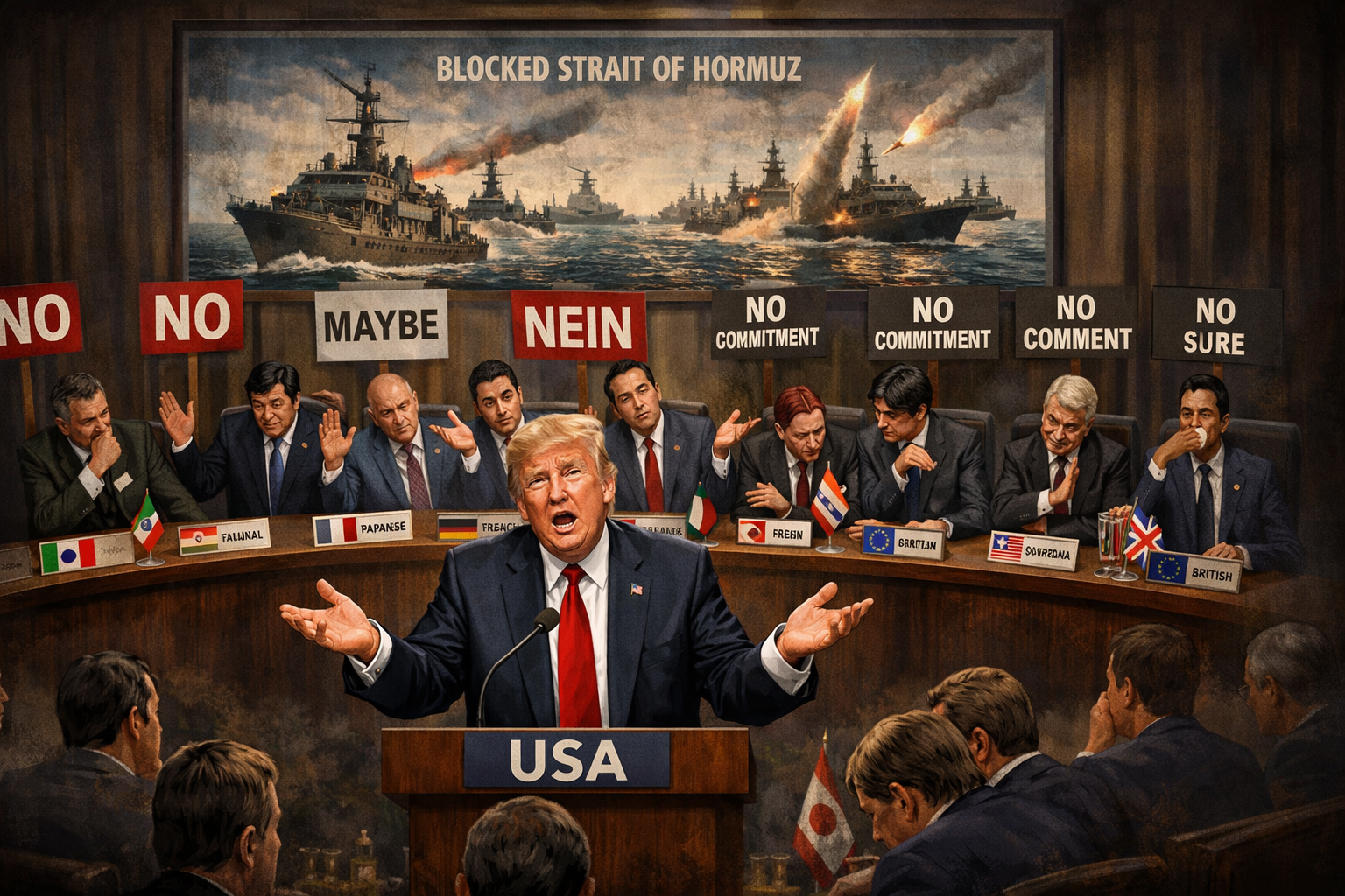 Dalam perkembangan terbaru, sejumlah negara sekutu utama Amerika Serikat memilih menolak atau tidak memberikan komitmen jelas atas ajakan tersebut. Italia, Spanyol, Jepang, Norwegia, Australia, Jerman, dan Kanada dilaporkan menolak keterlibatan langsung. Sementara Prancis masih bersikap ragu-ragu.